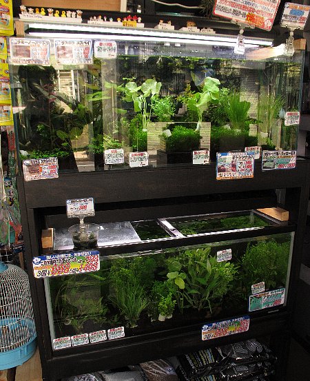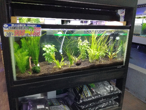 特に金魚草や、金魚やメダカの簡易セットが大量にあります。