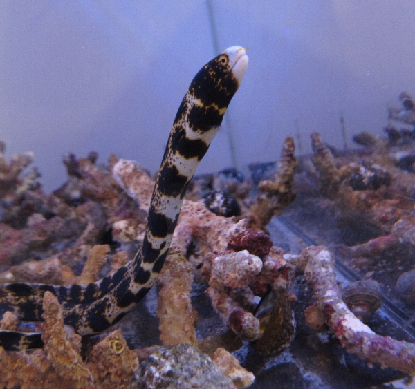 かわいい?ウツボ。乾燥エビ大好き 丈夫、飛び出しは注意です、蓋必須!