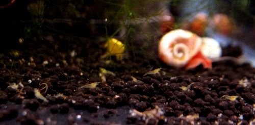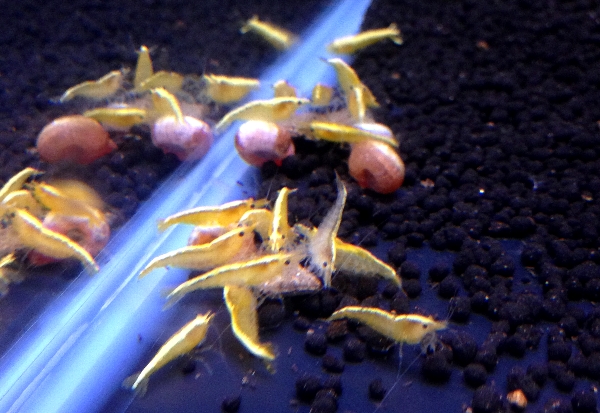 黄金蝦も、やっとふ化 稚エビたちがたくさん見えます。
