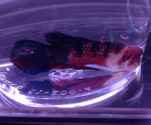 ダークブルーシュリンプも、色のいい抱卵個体が何匹かいるので繁殖待ちで飼育中。