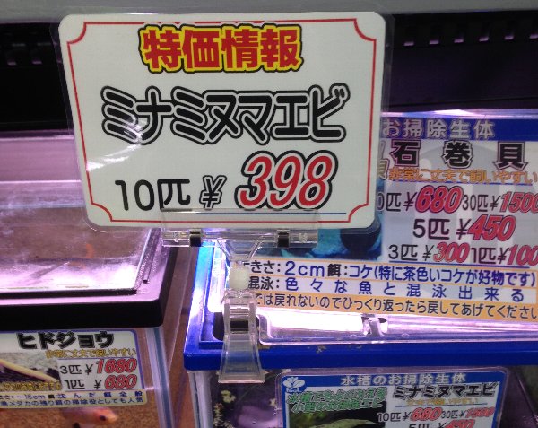 ヒドジョウも同時に入荷。一緒に飼うと可愛いかもしれません。