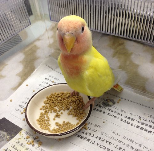 小桜インコたち だいぶ自分でエサを食べるようになってきてます。