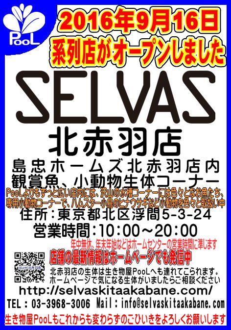 本日の宵祭りのご参加ありがとうございます。 2026年2月27日2016年9月18日 by 生き物屋PooL店主 年に1度の宵祭り、今年も大盛況でした。 金魚すくいも多くの方に楽しんでいただけていたようです。 ありがとうございます。 と、系列店が出来ました。細かいご案内はまた明日にでもさせてください。 本日は取り急ぎご案内を。 18日、19日はそちらの店舗に参加しているため、PooLはお休みです。 すみませんがよろしくお願いします。 PooLの今月の営業予定カレンダーです。