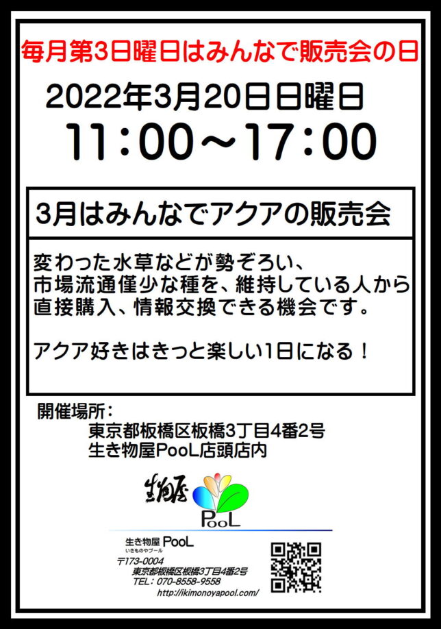 今週の日曜日5月22日第2回みんなで販売会を再び生き物屋PooL店頭で開催します。