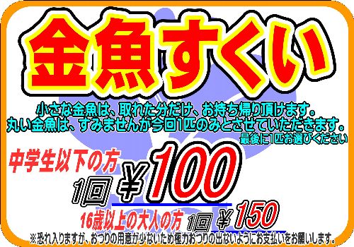 予定通り、本日27日、28日の土日は金魚すくいを行います。